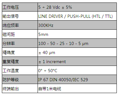 方波脈沖信號(hào);磁間距為5mm;專屬柔韌性強(qiáng)電纜;壓鑄模具外殼;M3或M4雙重固定方式