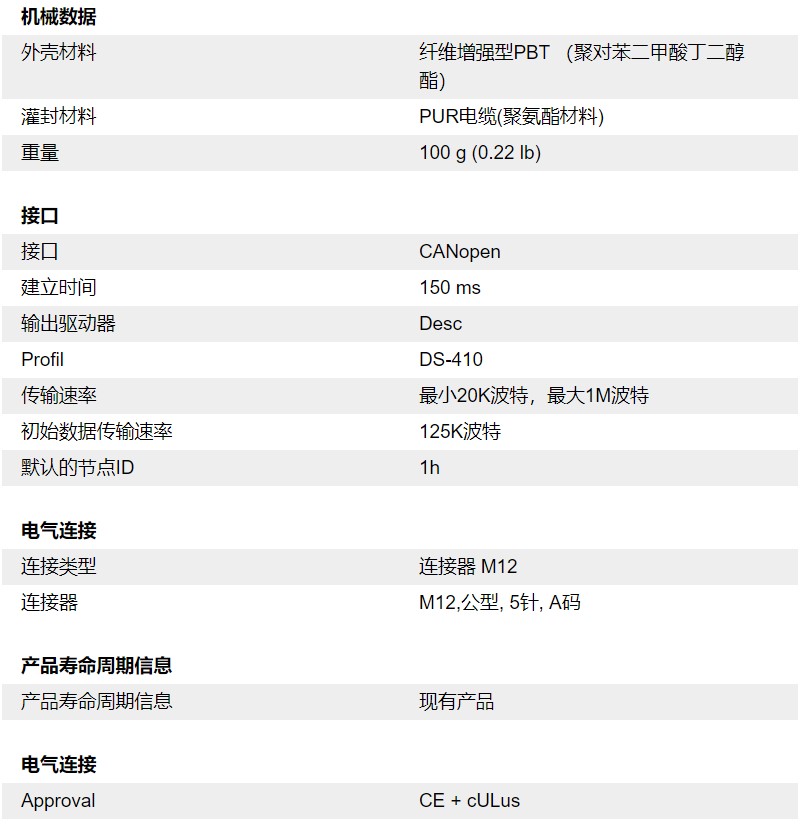 接口類型:CANopen、模擬量電流、模擬量電壓、RS232、SSI、J1939、DeviceNet