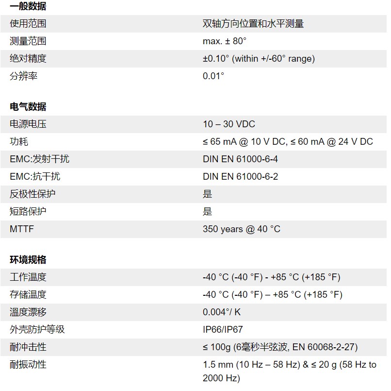 雙軸傾斜角傳感器產(chǎn)品特點(diǎn)